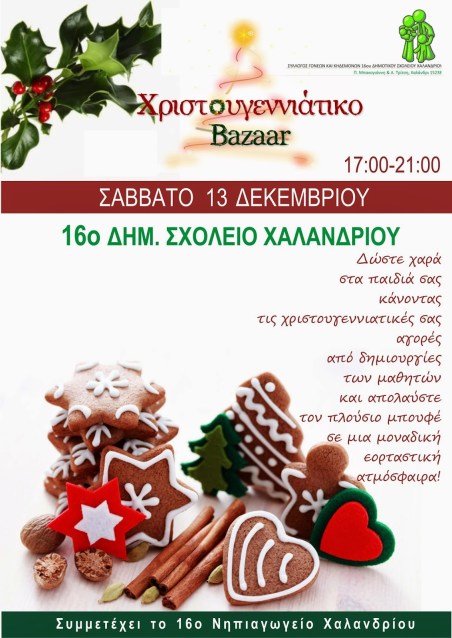 ΑΝΑΚΟΙΝΩΣΗ ΓΙΑ ΤΟ ΧΡΙΣΤΟΥΓΕΝΝΙΑΤΙΚΟ BAZAAR 10 Δεκεμβρίου 201425 Νοεμβρίου 201616syllogos Σχολιάστε Κοινοποιήστε:TweetΜου αρέσει! Φόρτωση...